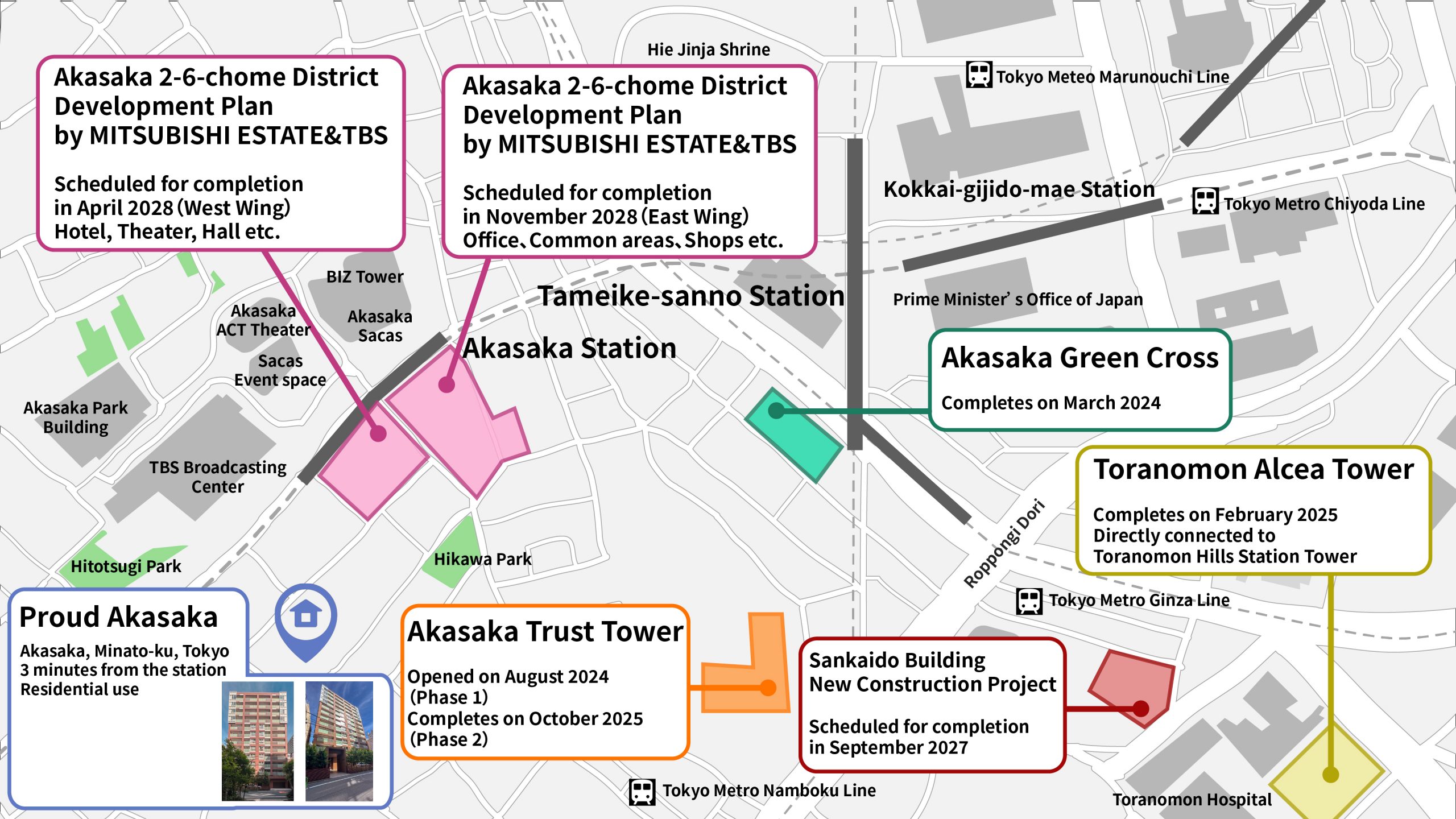A key point is the strong connection between major developments and corporate expansion in Akasaka.