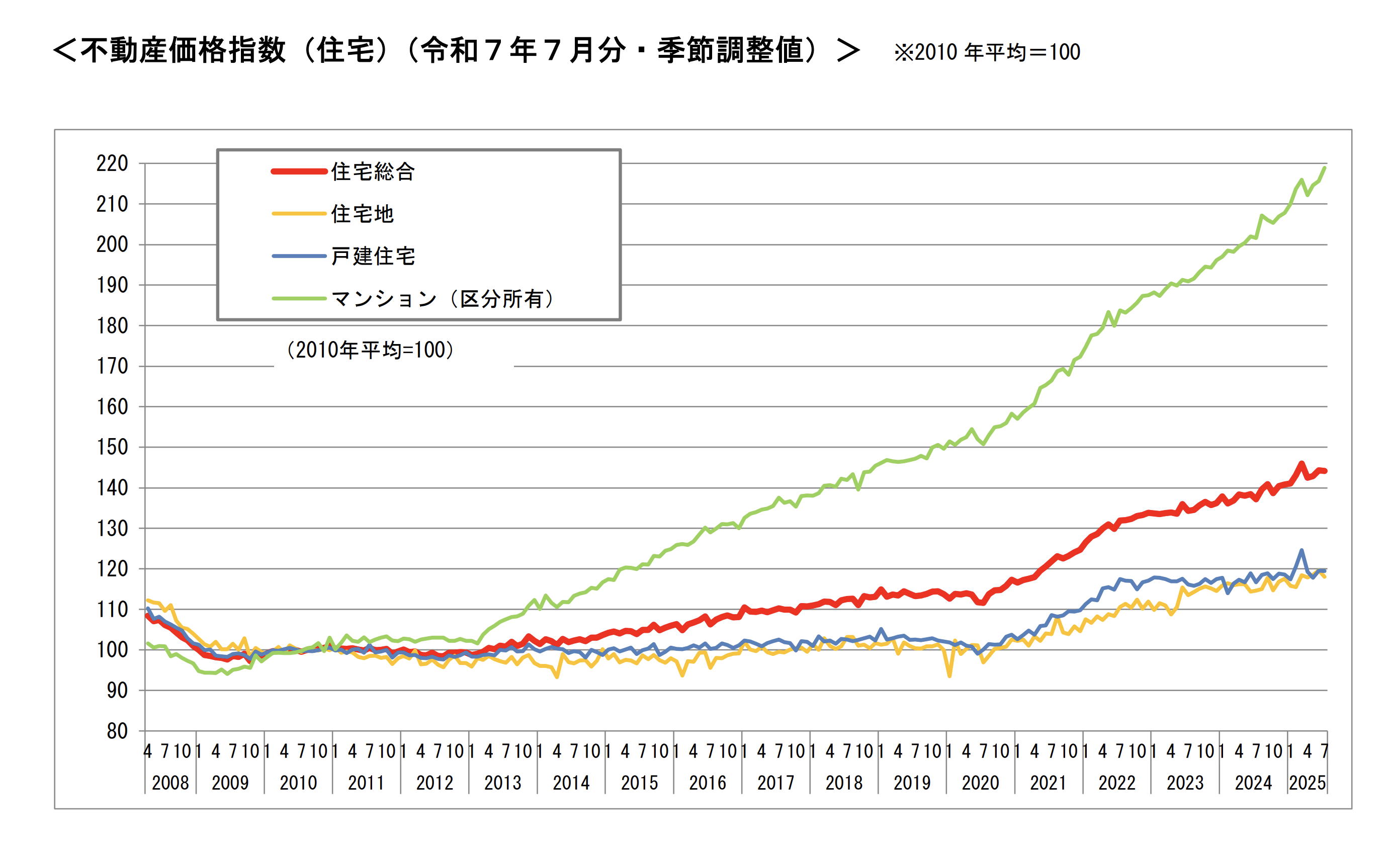 同時に公表された令和7年第2四半期の不動産価格指数では、住宅市場と商業用市場で対照的な動きが見られた。