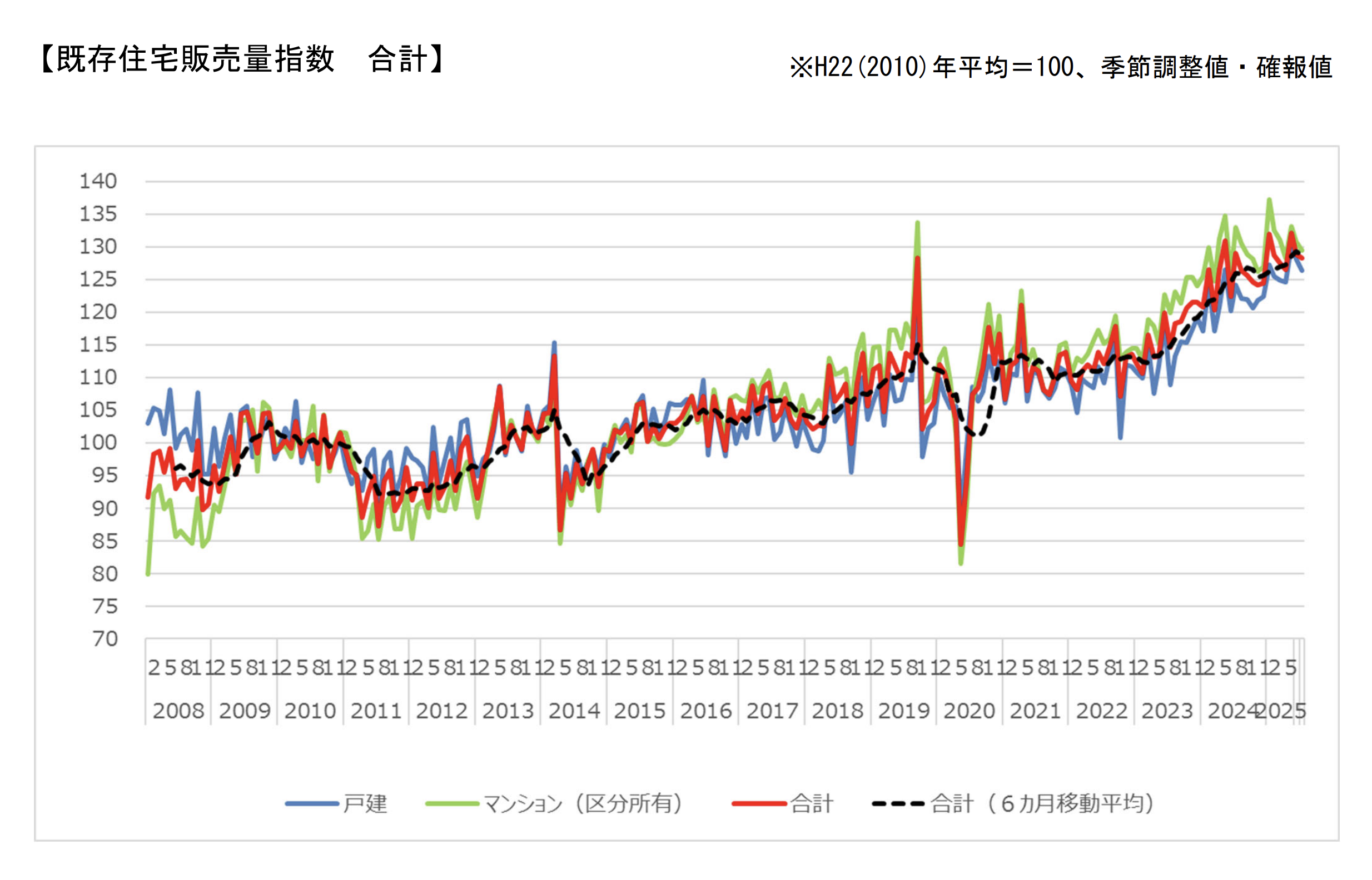 令和7年7月分既存住宅販売量指数:全国で小幅な減少、首都圏はやや軟調