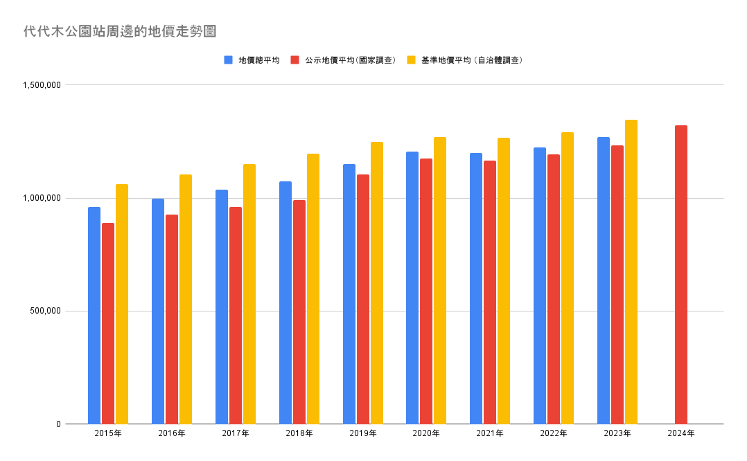 在最近三年間,代代木公園站周圍的地價共上漲了約25.29%,顯示該區域的土地容易保值升值。